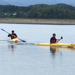 盛岡つなぎ温泉の目の前にある“御所湖”の周りを楽しむコースです。今回も元グルージャ盛岡の選手の皆さんとご紹介。